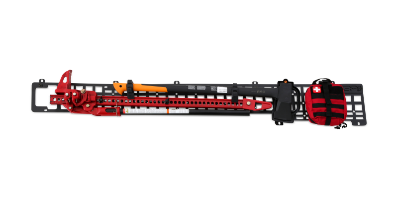 Introducing our versatile mounting system, designed to accommodate RotopaX containers, Hi-Lift jacks, Quick Fist mounts, MOLLE bags, and other accessories. This system includes Hi-Lift mounting hardware and mounts behind the utility rail, allowing full use with most accessories and tonneau covers. Constructed from 3mm formed steel, it features an easy bolt-on installation and fits both driver and passenger sides. The two-piece design works with short or long beds, although it does not fit Toyota OE bed light systems. Finished with a durable two-stage light texture black powder coat, this mounting system combines strength and functionality.