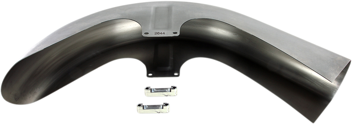 Heavy-gauge, one-piece raw steel construction, ready to paint. Laser trimmed to complement the rake of bike. Raw aluminum spacers are included. Made in the U.S.A..