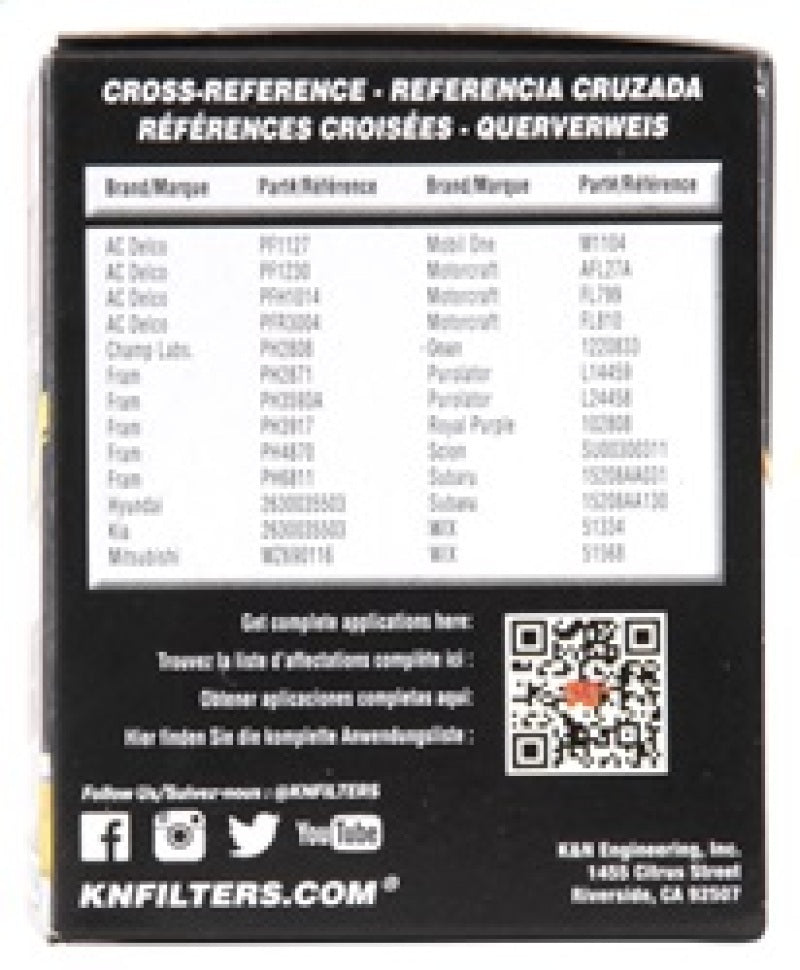 K&N premium oil filters are meticulously engineered to offer outstanding filtration and engine protection. Designed to operate with all synthetic, conventional, and blended motor oils, K&N's pleated synthetic-blend filtration media helps to shield your engine from contaminants and ensure a consistent flow of oil. The heavy-duty canister is engineered to be exceptionally durable, and a one-inch welded hex nut can be used for quick and easy filter removal. Each filter is specifically designed to withstand the service intervals recommended by vehicle manufacturers, and is protected by the K&N 1-Year Limited Warranty.
