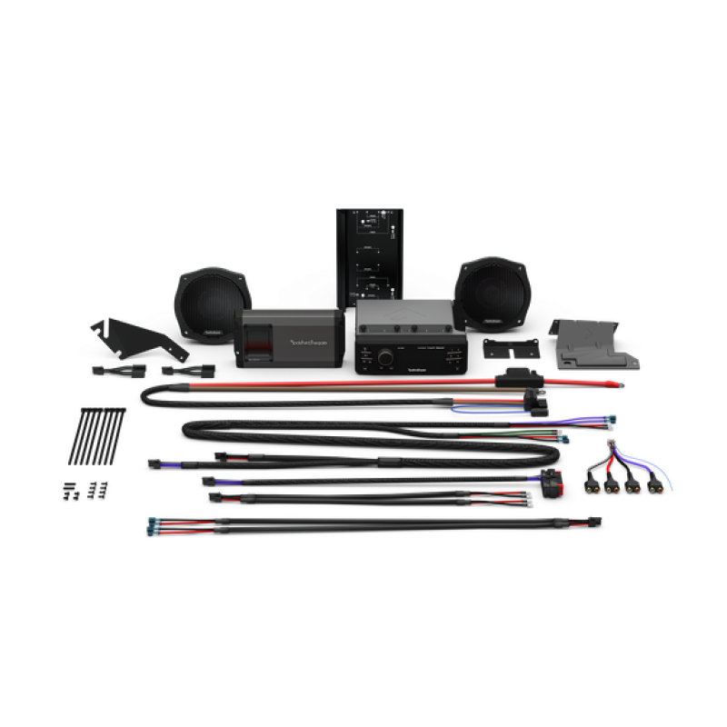 The next step in motorcycle performance, the Rockford Fosgate® M5 Audio Kits are the loudest and clearest audio systems yet. Featuring simple plug-and-play installation and paired with freeway speed output create the best in class on bike audio experience.