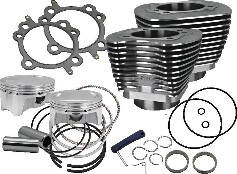 This bolt-in big bore kit is easy to install, and requires no machining or rebalancing. This is the largest bore (3.937") that can be fit in a stock engine case. Stock engine height is maintained so there are no manifold or frame fitment issues. The S&S 11 fin cylinder design closely resembles OEM shape and come prefinished - ready to install. Cylinders feature increased fin area for better heat dissipation, and the centrifugal cast, gray iron liner features 40,000 psi tensile strength for superior wear and performance. The pistons in this kit have a 3cc pop-up dome for slightly higher compression rato. This is one reason to choose and S&S 107" kit over the S&S 106" kit which has slightly less compression.