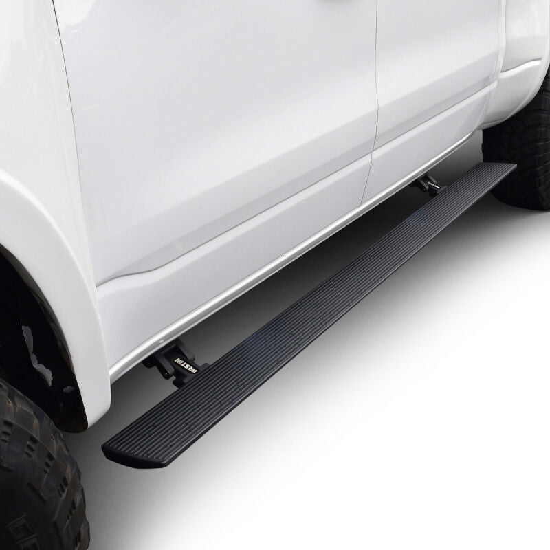 Introducing the all-new Westin Pro-e Power Running Boards, a superior upgrade that combines the functionality and appearance of your Truck, Bronco, Jeep or SUV. The Pro-e Power Running Boards are designed with a practical feature that automatically deploys when the vehicle's door is opened. This allows for easy entry and exit. When the door is closed, the running boards smoothly retract, seamlessly integrating with the vehicle's body and maintaining its sleek appearance.Equipped with two waterproof IP68 rated motors per side, these running boards are engineered for durability and reliability in any weather condition. The integrated LED lights illuminate the 6-inch wide, durable aluminum step surface, ensuring enhanced visibility and safety. Whether it's day or night, you can confidently step onto these running boards with their impressive weight capacity of up to 300 lbs. per side.The Pro-e Power Running Boards are constructed from corrosion-resistant aluminum and finished with a durable textured black powder coat. The included vehicle-specific mounting brackets and hardware guarantee a seamless installation process, ensuring a perfect fit for your vehicle.